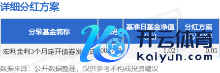 本站音讯开云体育(中国)官方网站,11月13日发布《宏利金利3个月按时绽放债券型发起式证券投资基金分成公告》。本次分成为2024年度第4次分成。公告披露,本次分成的收益分拨基准日为11月11日,详备分成有斟酌如下: