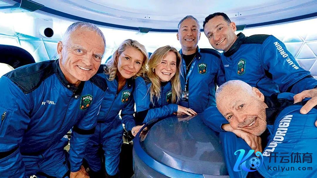 蓝色发源公司的第八次载东谈主旅行中,6名乘客在天际合影。图/蓝色发源
