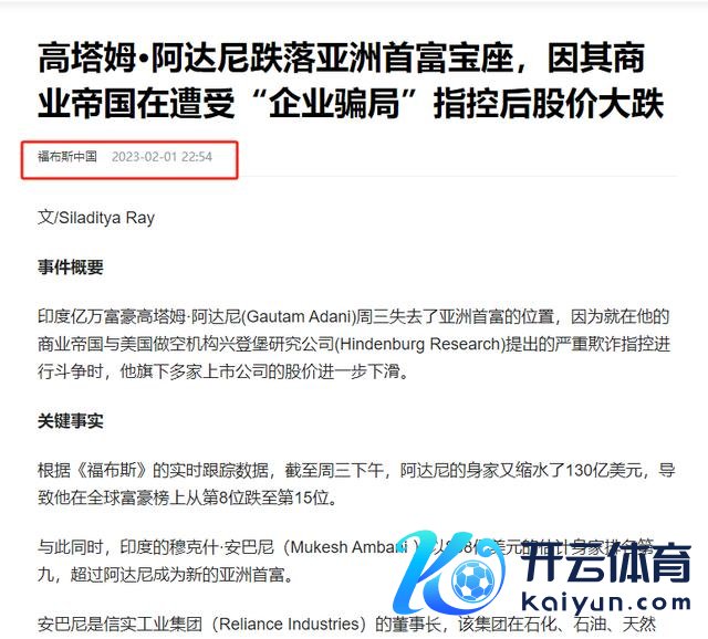 2023年,阿达尼集团遭到了好意思国作念空机构公司发出的严重诓骗指控,称阿达尼集团存在游戏人间操控制股票、司帐诓骗等情况。