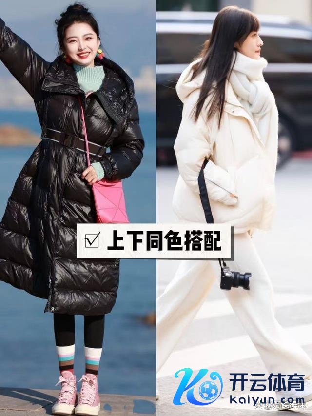 穿戴长款羽绒服时,最浅薄的搭配计谋是选拔同色系搭配,以此强化造型的全体感,进而使视野不自发地进取移,达到拉长体态、显高的后果。