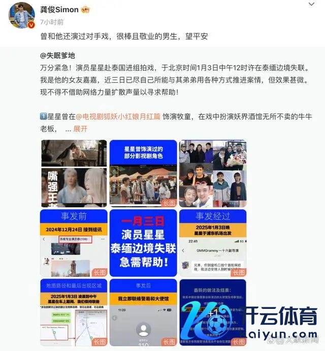 1月6日凌晨1点,演员龚俊在个东说念主搪塞平台发文称,“曾和他还演过敌手戏,很棒且敬业的男生,望吉祥。”