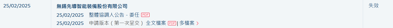 无锡先导智能装备股份有限公司(简称:先导智能)于2月25日所递交的港股招股书满6个月,于8月25日失效,递表时中信证券、摩根大通为联席保荐东谈主。
